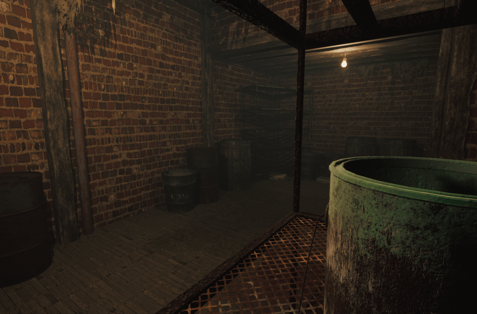 I wanted the basement to give the old, creepy look often seen in movies. By making steep stairs, I aimed to give the creeps to the players, creating an eerie atmosphere. I included a puzzle involving cables that players must follow to find a book connected to the door. The player will have encouraged exploration to find a way out, with revealing the problem (the locked backdoor) before players discover the key in the other room. Knowing they would encounter the bloody operation room, I have been breadcrumbing the letters so that they will uncover what happened in there but also thats how i've been telling the story of the Manor.
